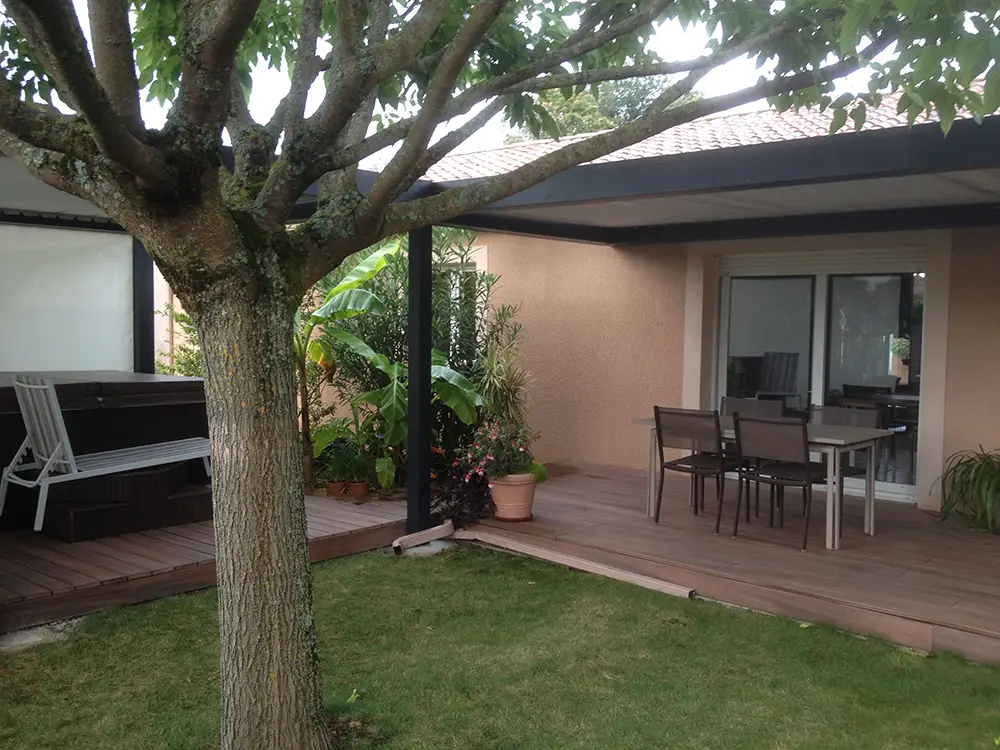 un espace extérieur de 44 m², esthétique, fonctionnel et convivial, idéal pour profiter du spa de jour comme de nuit.